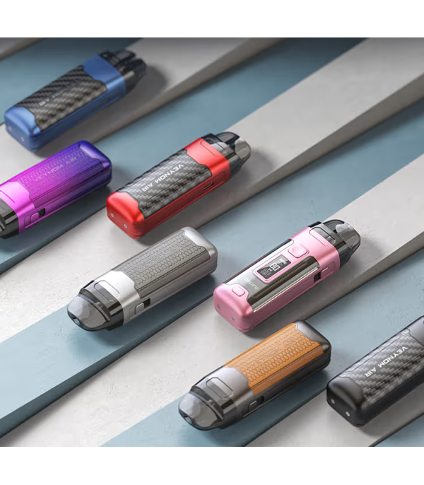 Aspire Veynom Air, 2800 mAh bataryası, 5 ml pod kapasitesi ve çoklu coil uyumluluğu ile öne çıkan bir pod mod cihazıdır. Hem estetik hem de fonksiyonel tasarımıyla kullanıcıya yoğun aroma ve bol buhar sunar.