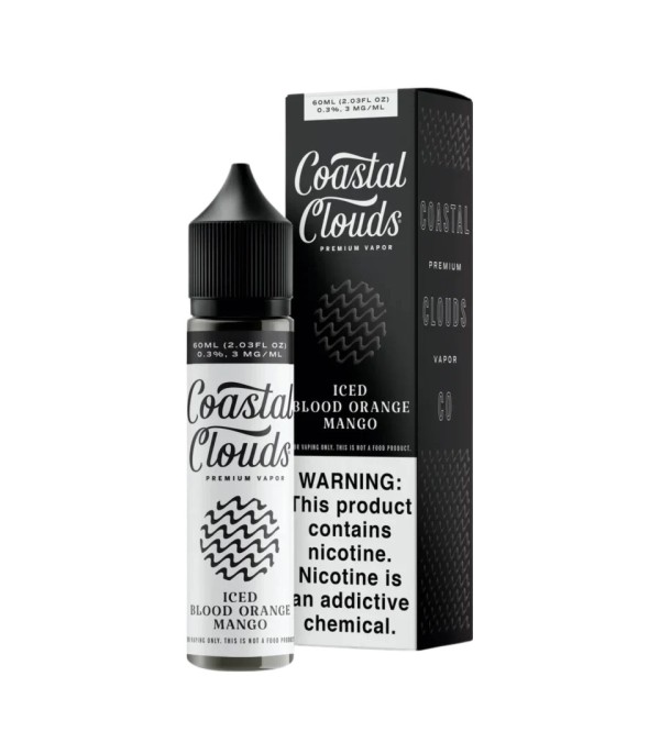 Coastal Clouds Iced Blood Orange Mango, kan portakalı ve mango aromalarını buzlu ferahlıkla birleştiren 60 ml’lik freebase e-likittir. 70 VG / 30 PG oranı ile tropikal, serin ve canlı bir içim sunar.