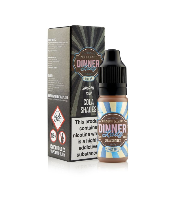 Dinner Lady'nin Cola Shades Salt Likiti ile serinleyin! Taze kola, limon ve mentol notalarının muhteşem birleşimi. Elektronik sigara keyfini keşfedin.