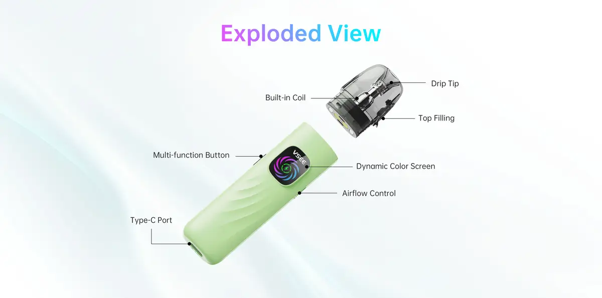 • 2ml likit kapasitesi — podları sık doldurma ihtiyacını azaltır.