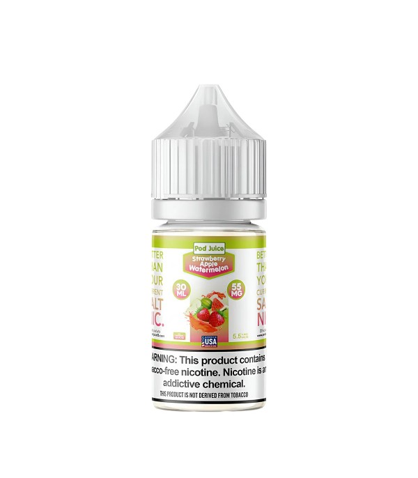 Pod Juice Strawberry Apple Watermelon Salt Likit, çilek, elma ve karpuz aromalarının tatlı ve ferah birleşimini sunan meyvemsi bir elektronik sigara likitidir. 50VG / 50PG oranı sayesinde yumuşak içim ve dengeli aroma deneyimi sağlar. 30 mL şişede; 35 mg ve 55 mg nikotin seçenekleriyle üretilmiştir.