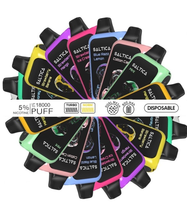 Saltica Cyber: 18000 çekim, 800 mAh güçlü batarya, 18 farklı lezzet, 50 MG nikotin oranı ve dijital göstergesi ile benzersiz bir elektronik sigara deneyimi sunuyor.